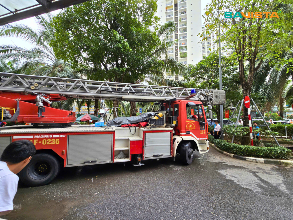 Trong phần thực hành, Ban Quản trị, Ban Quản lý, đội PCCC cơ sở, lực lượng an ninh cơ sở khu phố 21 cùng đội ngũ nhân viên đang làm việc tại chung cư và Quý cư dân đã phối hợp xử lý kịch bản PCCC. Hệ thống báo cháy, thang máy, lối thoát hiểm và các thiết bị kỹ thuật được kích hoạt để mô phỏng tình huống thực tế, giúp đánh giá mức độ phản ứng, khả năng phối hợp và tính hiệu quả trong vận hành.