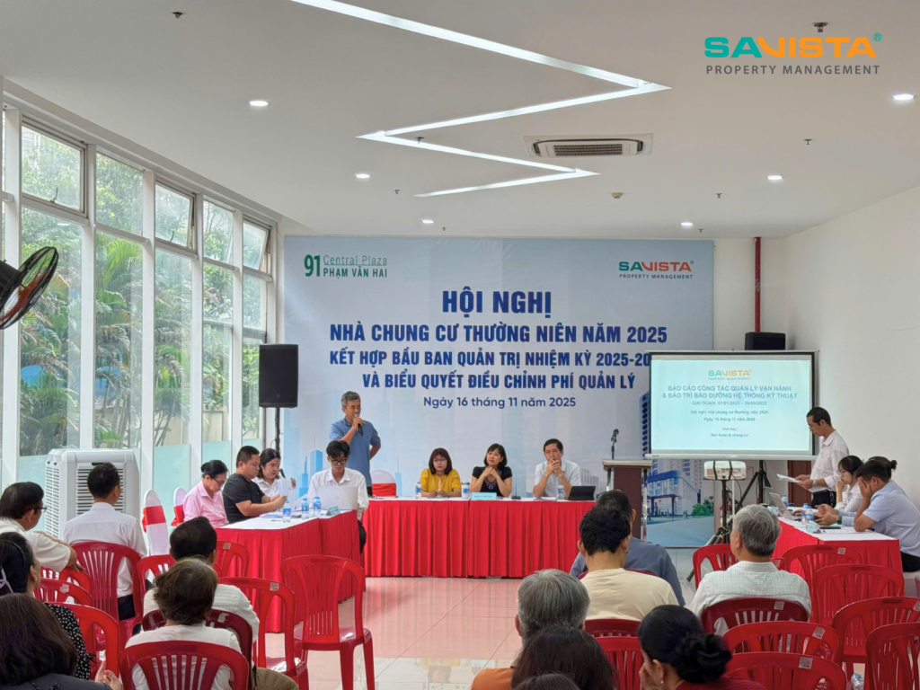 Nhằm tổng kết hoạt động quản lý vận hành, cập nhật thông tin và ghi nhận ý kiến của cộng đồng cư dân, Ban Quản trị và Ban Quản lý SAVISTA PM tại Chung cư Central Plaza đã tổ chức Hội nghị Nhà chung cư thường niên năm 2025 vào ngày 16/11/2025 tại Phòng sinh hoạt cộng đồng.