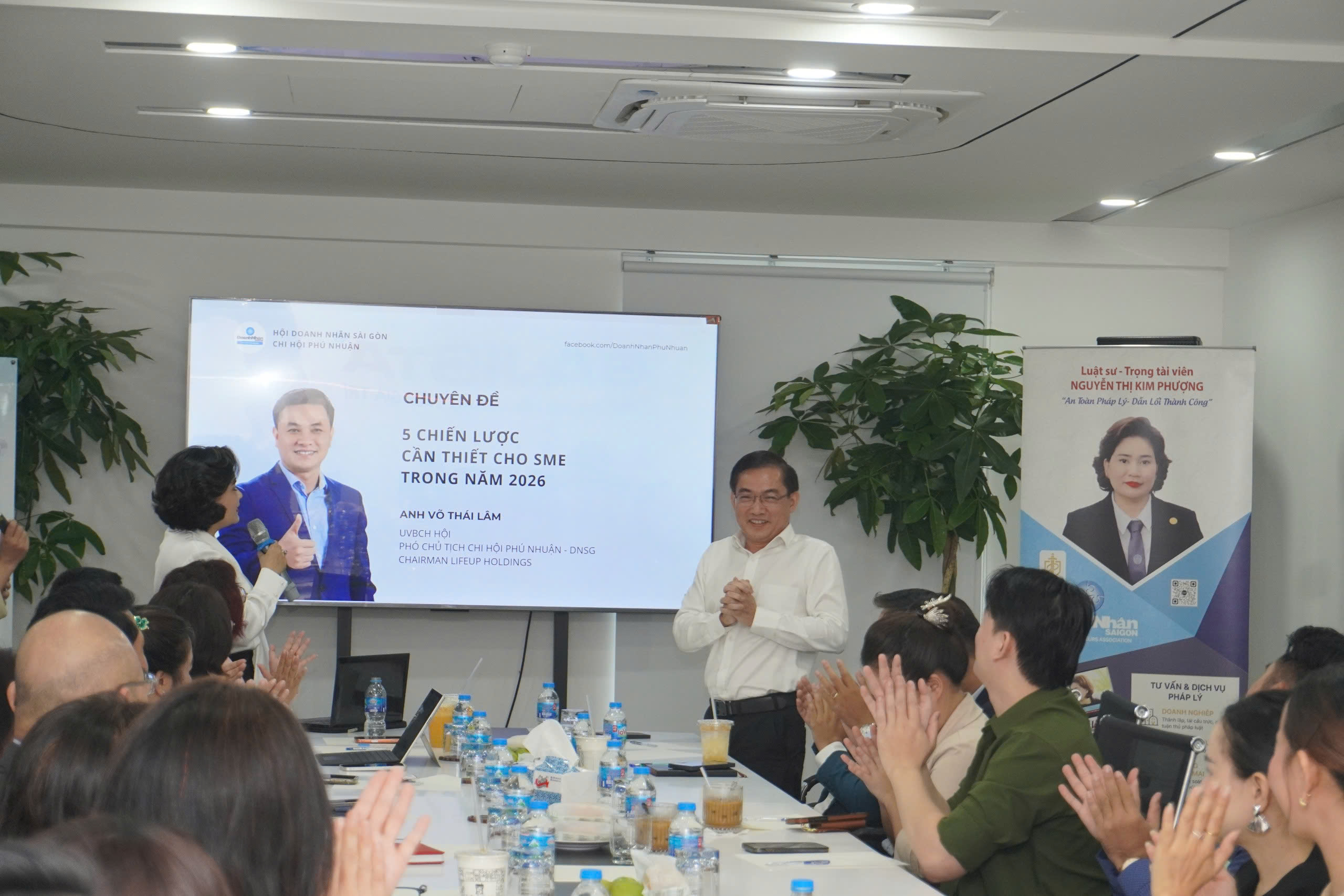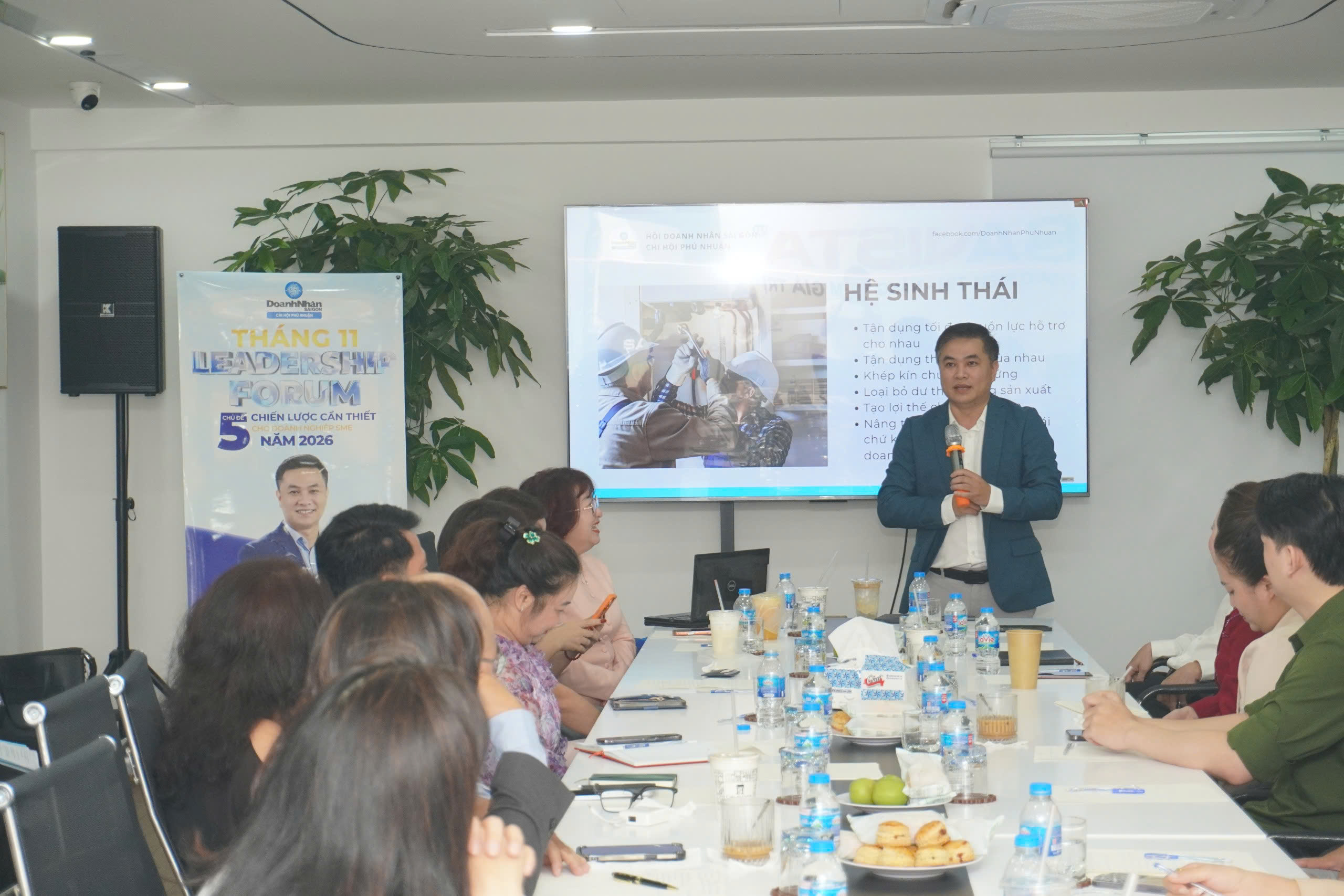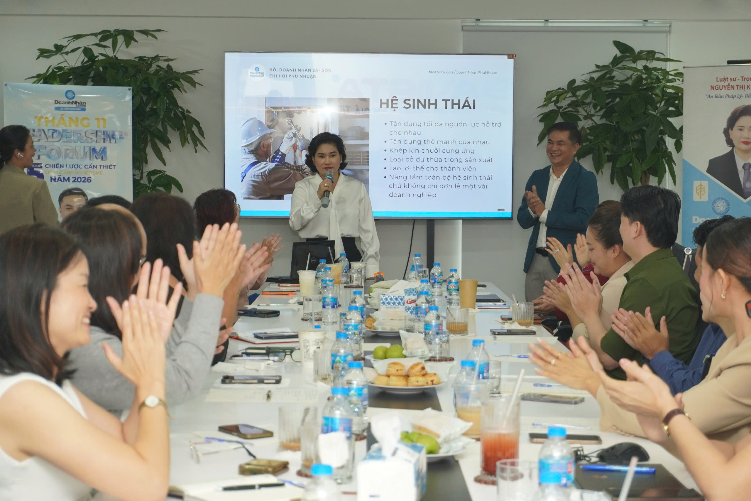 Cũng nhân dịp này, chương trình Leadership Forum Tháng 11 đồng thời được tổ chức. Ông Leo Võ Thái Lâm – Ủy viên BCH Hội Doanh nhân Sài Gòn, Phó Chủ tịch Chi hội Phú Nhuận; Giám đốc Công ty TNHH Lifeup Holdings đã có những chia sẻ thú vị với Chuyên đề “5 chiến lược cần thiết cho doanh nghiệp SME trong năm 2026”. Ngoài ra, phần “Speed Business Matching” đã mang đến cơ hội giao lưu, kết nối hợp tác giữa các Hội viên và Khách mời.