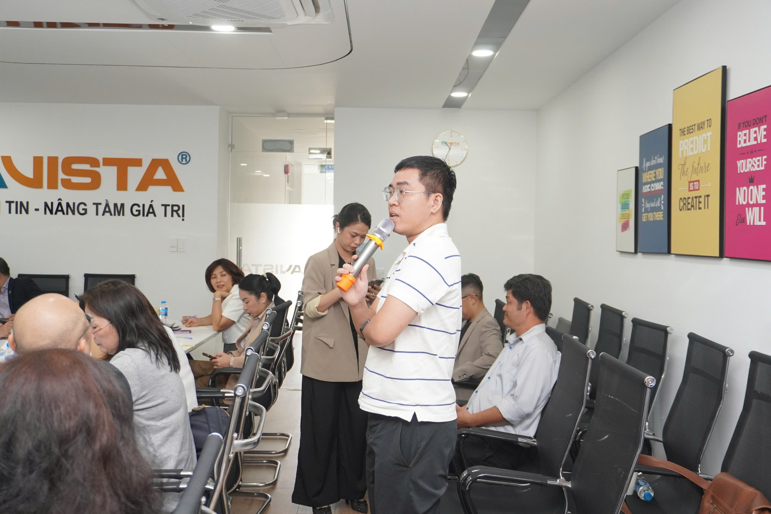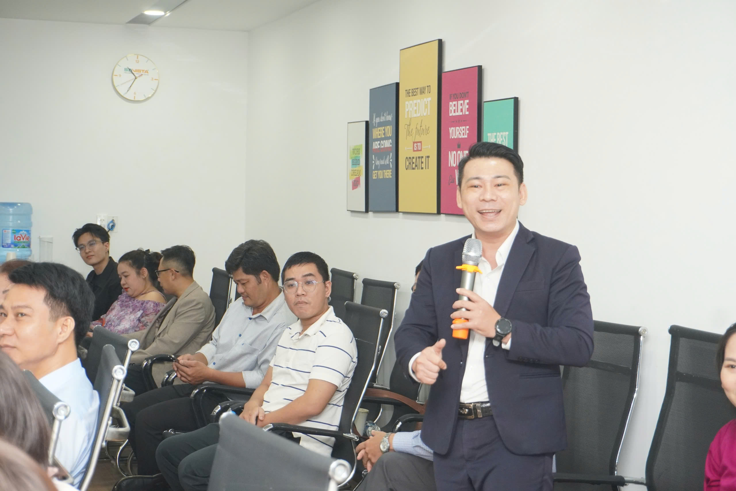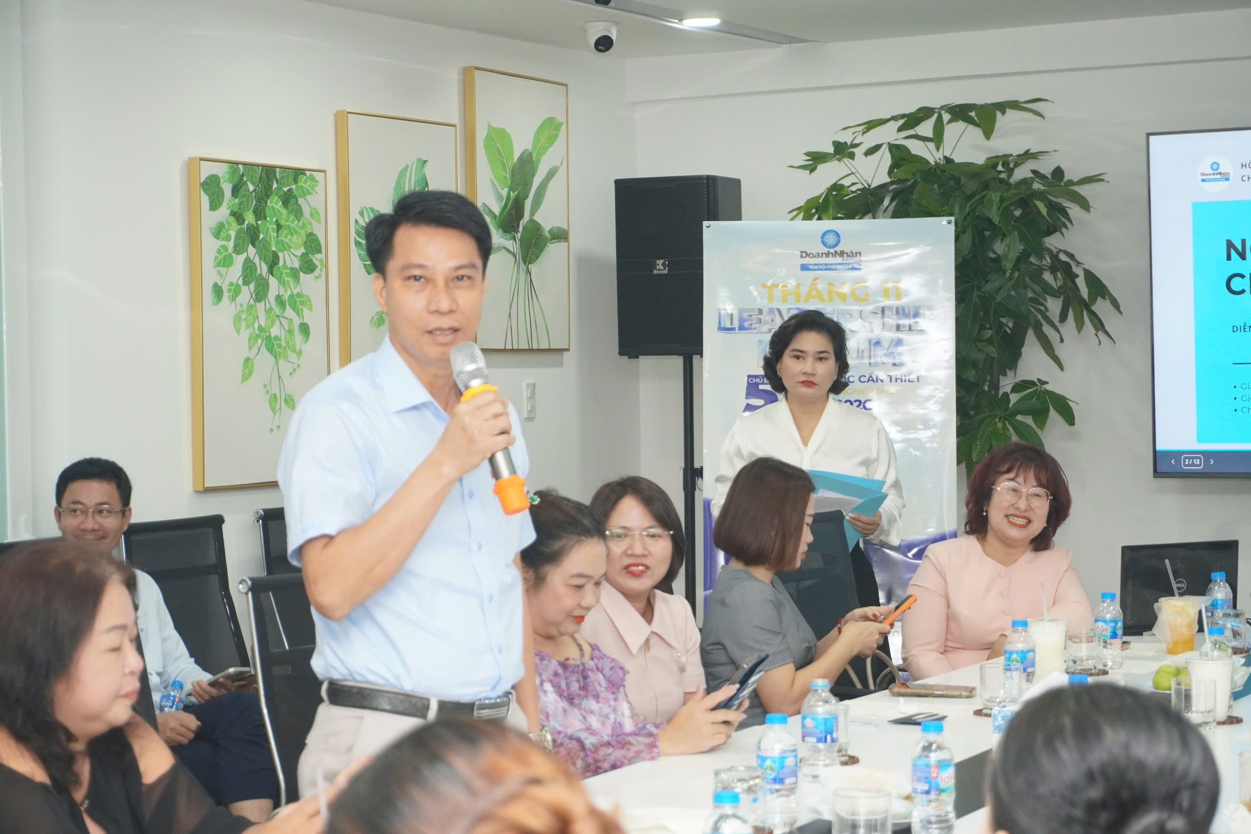 Ông Nguyễn Tiến Dũng – Ủy viên Ban Chấp hành Hội, Phó Chủ tịch Chi hội Phú Nhuận, Chủ tịch HĐQT kiêm Tổng Giám đốc SAVISTA Holdings chia sẻ tại buổi gặp mặt.
