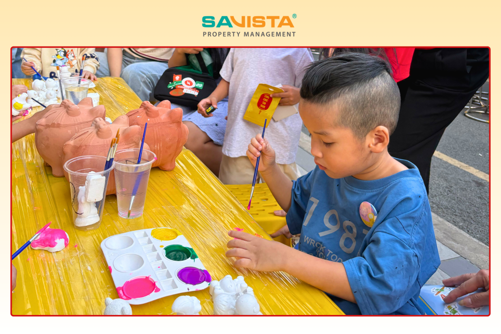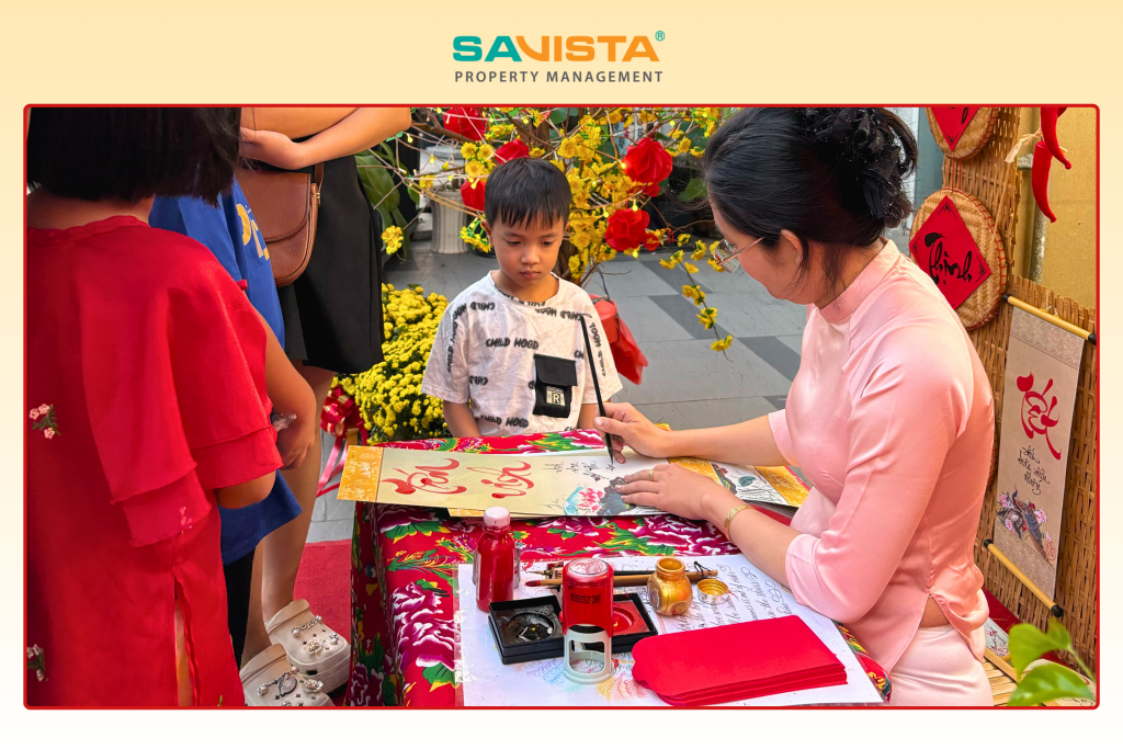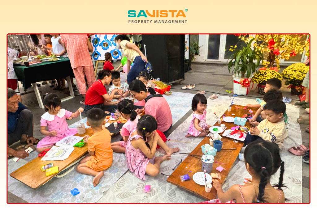 Chương trình thu hút đông đảo cư dân, đặc biệt là các em thiếu nhi với chuỗi trải nghiệm đa dạng. Sự kết hợp giữa các góc thủ công truyền thống như trang trí bao lì xì, viết thư pháp, nặn đất sét khô… đã tạo nên không gian sinh hoạt sôi nổi, mang lại nhiều tiếng cười cho cư dân nhí.