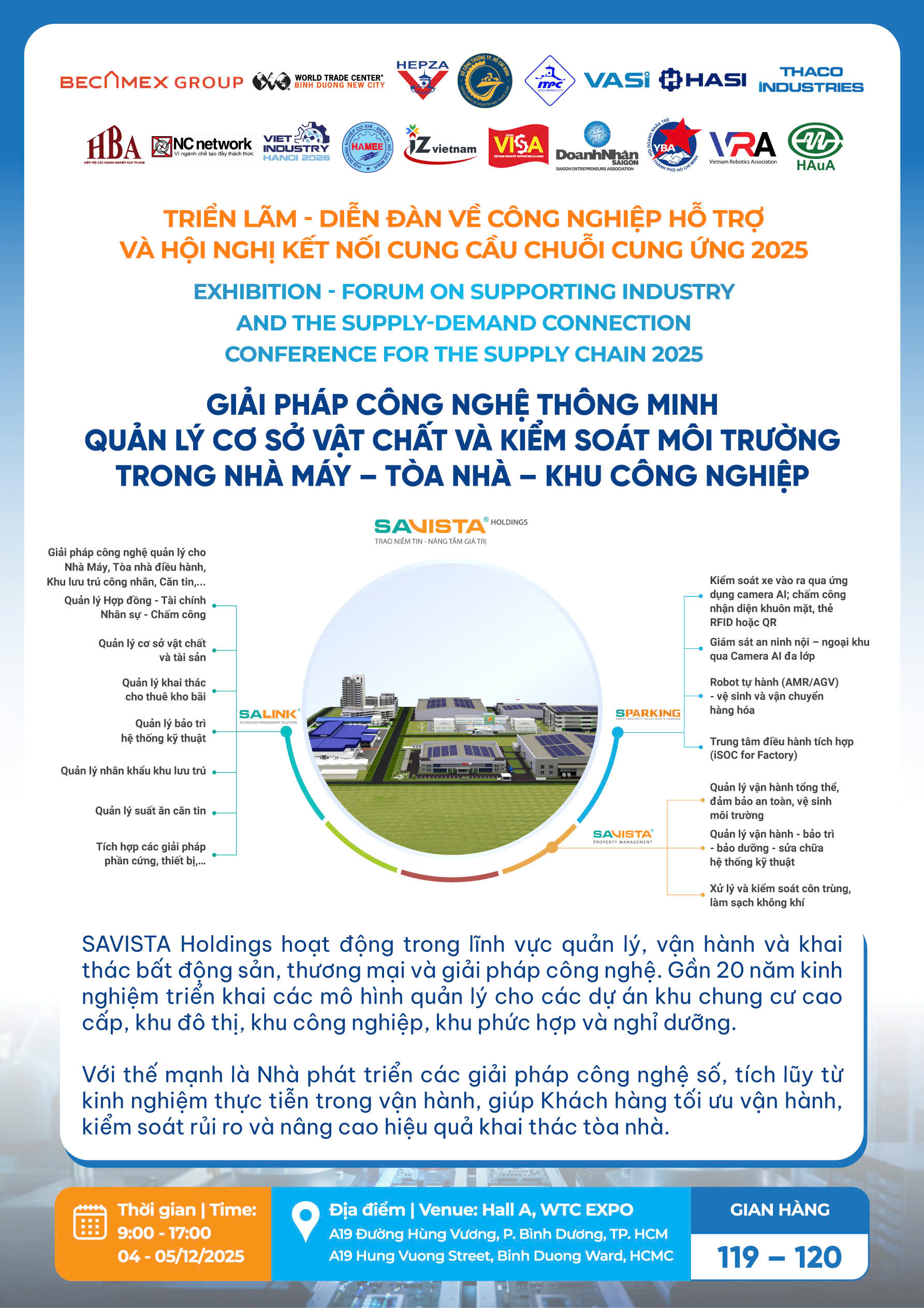 Trân trọng kính mời Quý Đối Tác và Khách Hàng ghé thăm Gian hàng SAVISTA Holdings. Chúng tôi sẵn sàng tư vấn và giới thiệu các giải pháp quản lý, vận hành và công nghệ tối ưu.