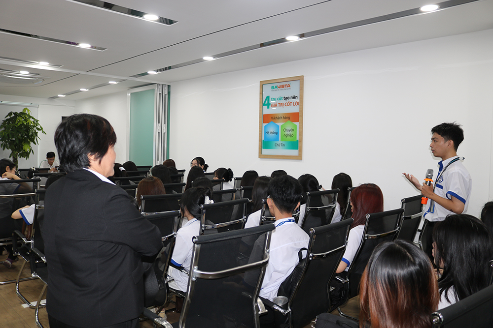 Điểm nhấn của chương trình là phần chia sẻ từ các chuyên gia của SAVISTA Holdings: Bà Huỳnh Ngọc Hiệp – Phó Giám đốc Trung tâm Đào tạo Nghiệp vụ và Kỹ năng Quản lý (TPS Center), Ông Lê Tấn Huy – Giám đốc điều hành Công ty SALINK Việt Nam và Ông Huỳnh Công Bảo Anh – Trưởng phòng Hành chính Nhân sự. Những phân tích trực quan đã mang đến cho sinh viên cái nhìn toàn diện, sâu sắc về ngành nghề.