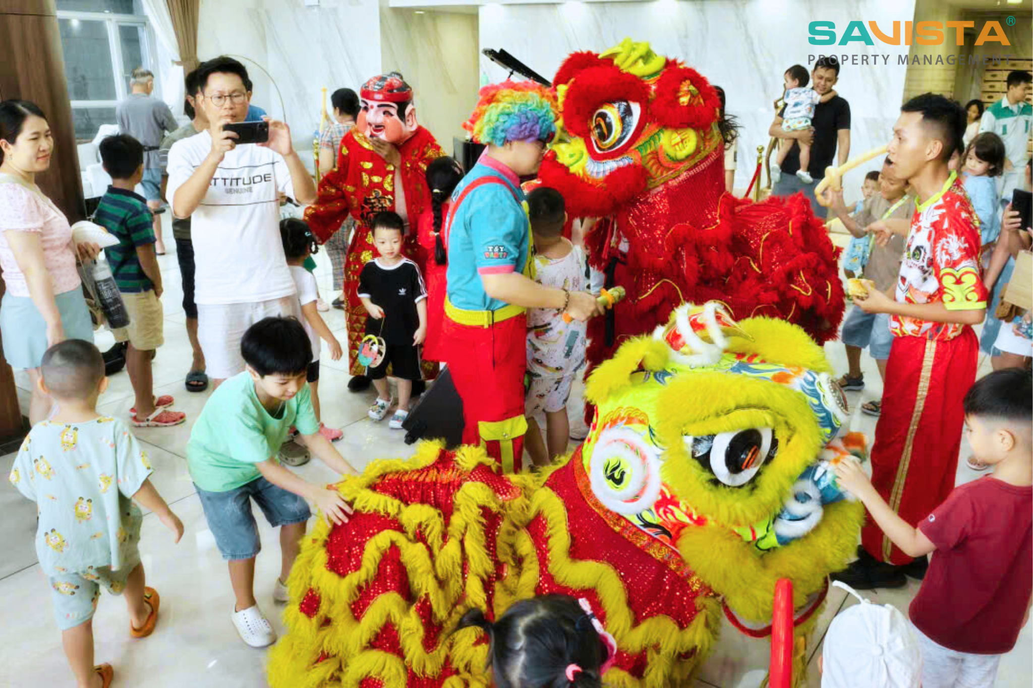 - Tiết mục múa lân – giao lưu cùng các bé, rước đèn và phá cỗ Trung Thu.