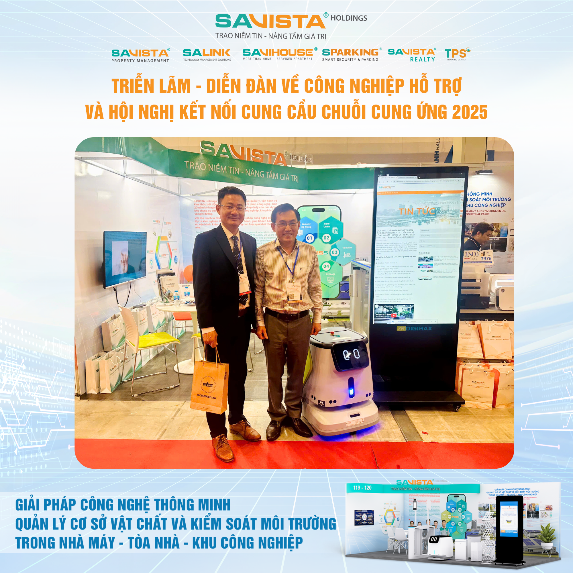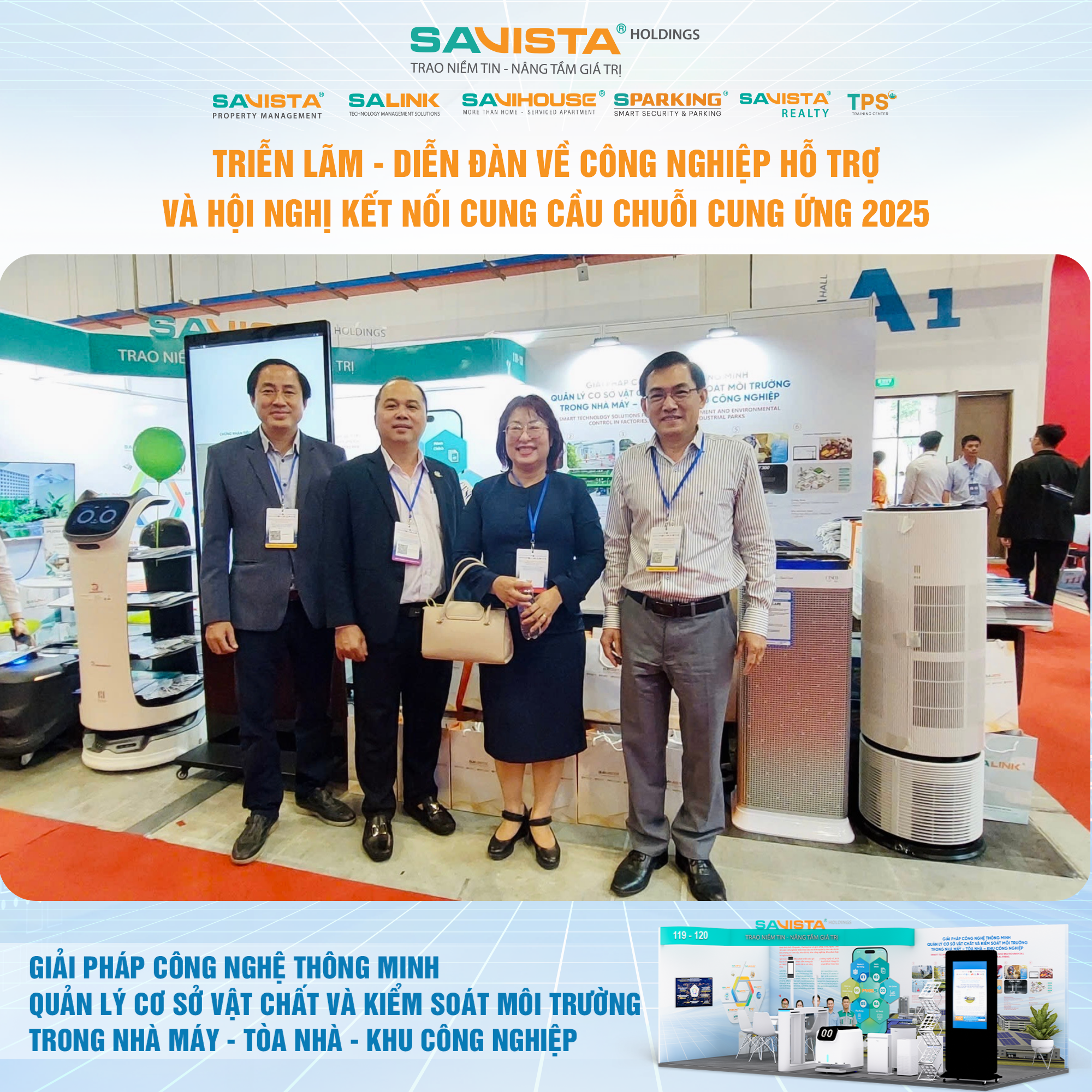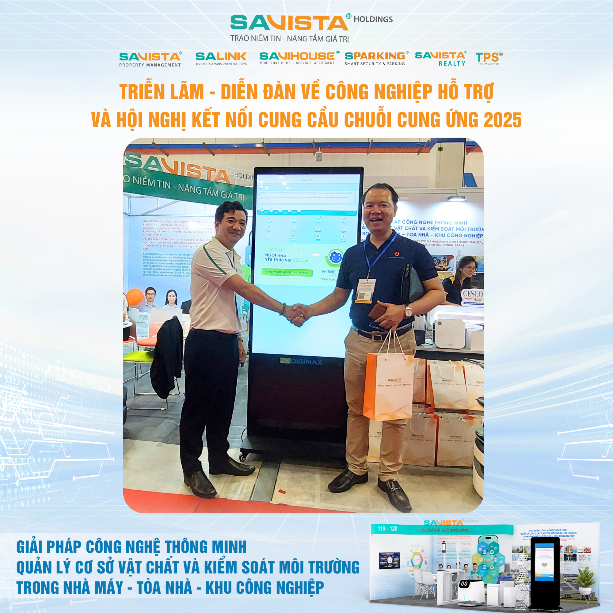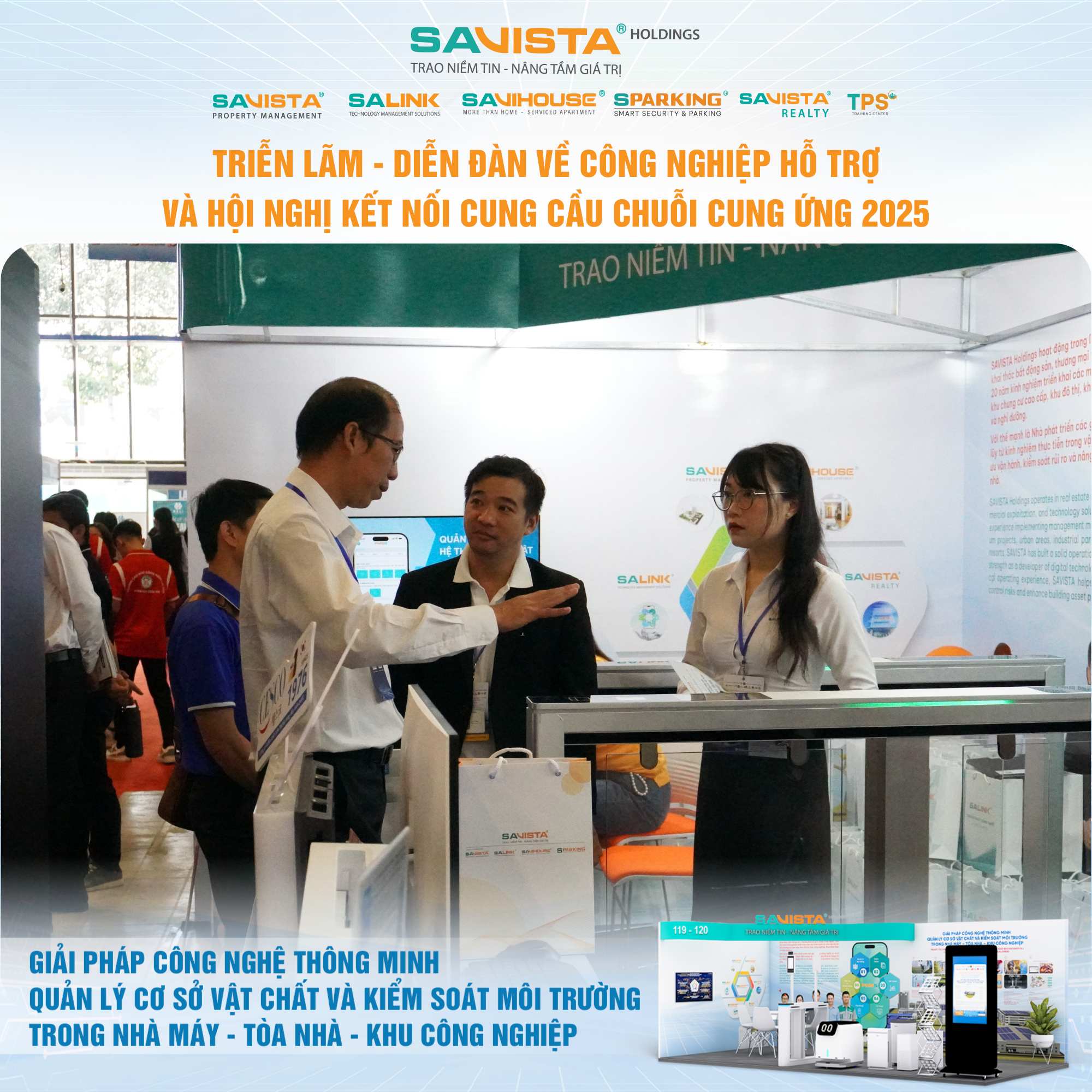 Hiện diện tại sự kiện, SAVISTA thể hiện sự đồng hành cùng cộng đồng doanh nghiệp trong lĩnh vực công nghiệp hỗ trợ, thông qua việc cung cấp các giải pháp công nghệ phù hợp với điều kiện vận hành tại Việt Nam, góp phần nâng cao năng lực tự chủ, chuẩn hóa quản lý và tăng cường tính bền vững cho nhà máy, tòa nhà, khu công nghiệp. Đây cũng là dịp để SAVISTA mở rộng kết nối đối tác, lắng nghe nhu cầu thị trường và tiếp tục hoàn thiện hệ sinh thái giải pháp phục vụ khách hàng trong giai đoạn tiếp theo.