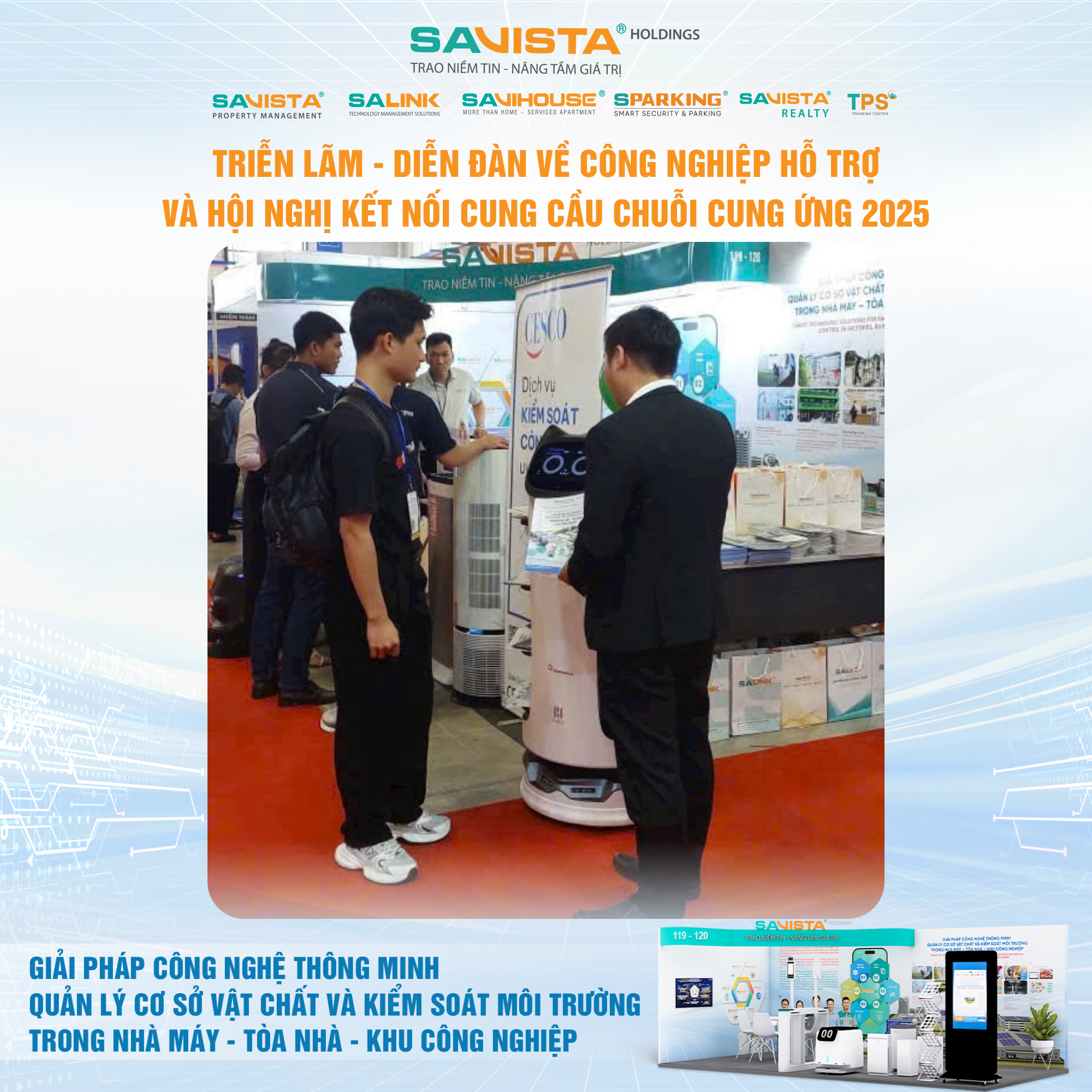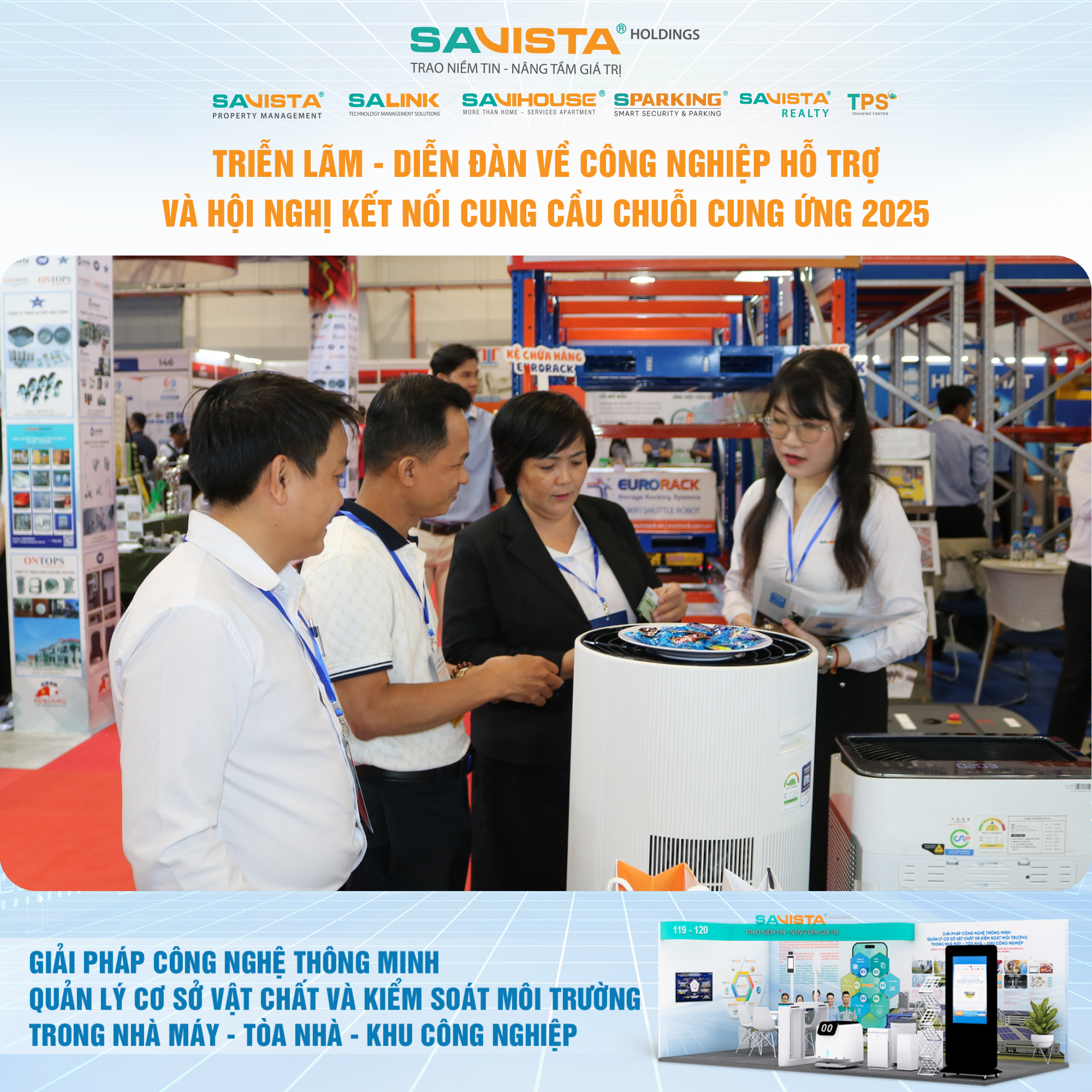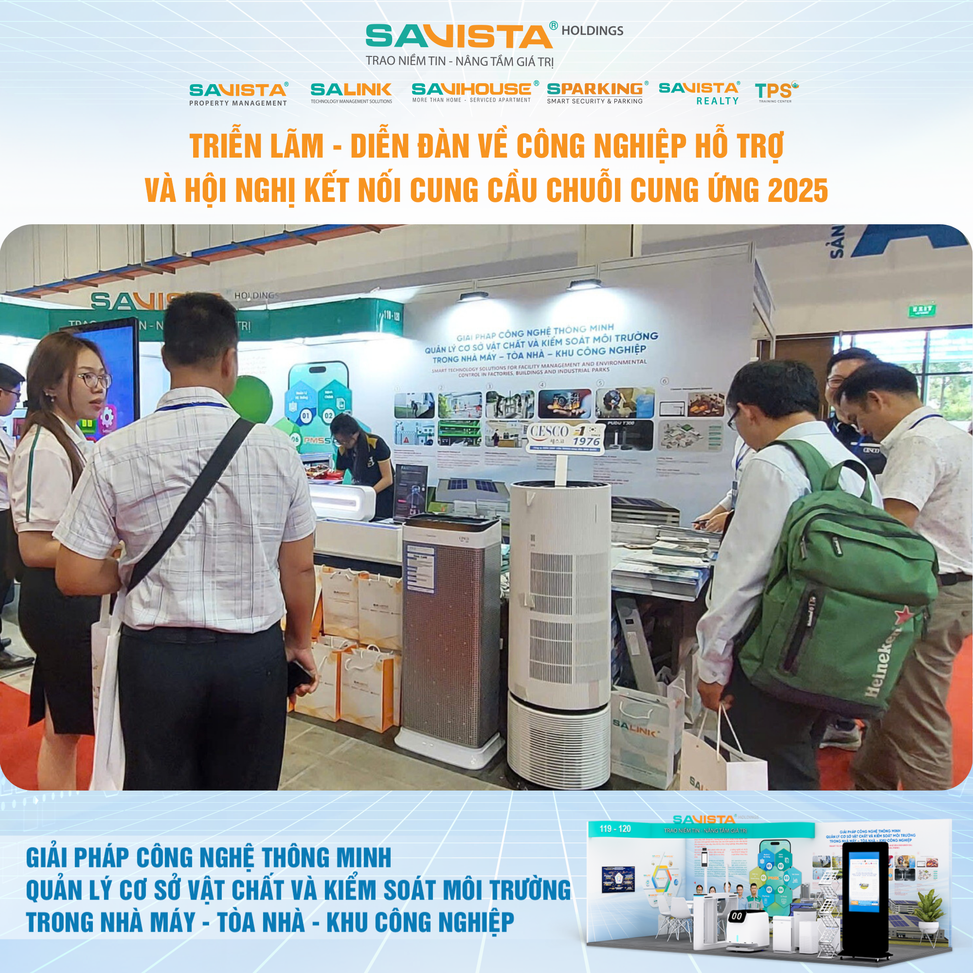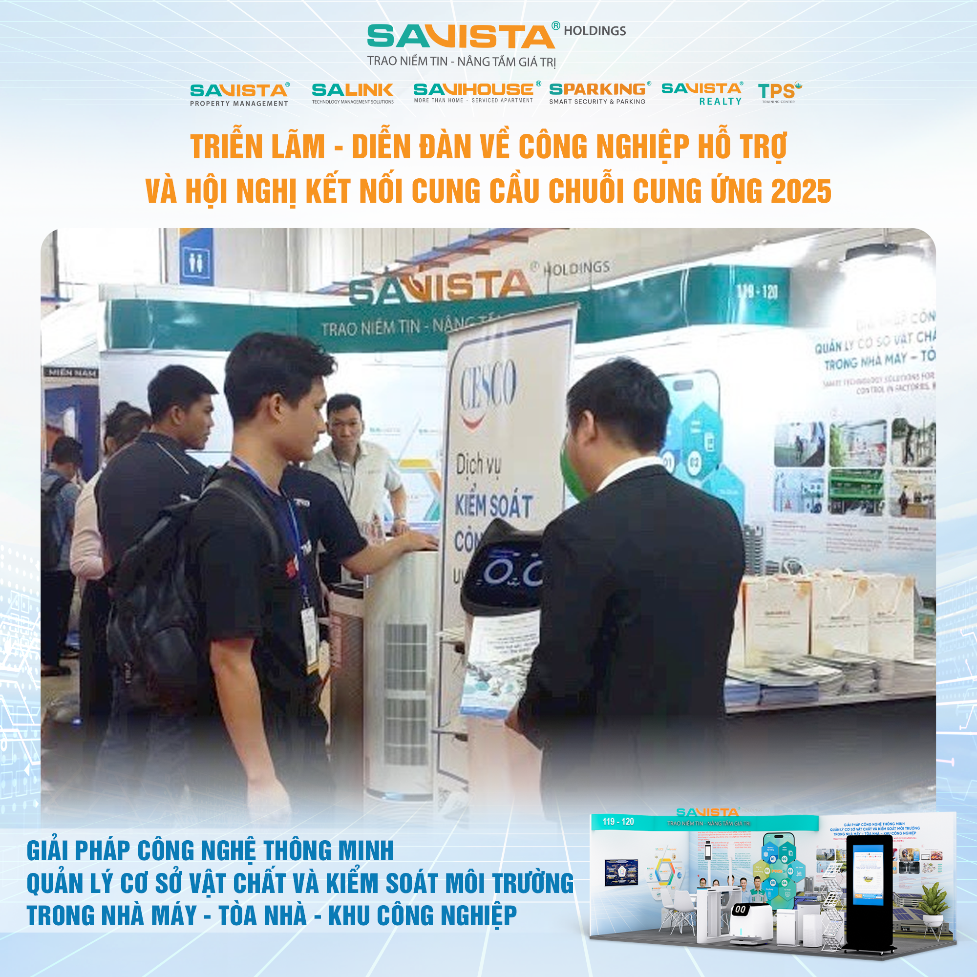 Hiện diện tại sự kiện, SAVISTA thể hiện sự đồng hành cùng cộng đồng doanh nghiệp trong lĩnh vực công nghiệp hỗ trợ, thông qua việc cung cấp các giải pháp công nghệ phù hợp với điều kiện vận hành tại Việt Nam, góp phần nâng cao năng lực tự chủ, chuẩn hóa quản lý và tăng cường tính bền vững cho nhà máy, tòa nhà, khu công nghiệp. Đây cũng là dịp để SAVISTA mở rộng kết nối đối tác, lắng nghe nhu cầu thị trường và tiếp tục hoàn thiện hệ sinh thái giải pháp phục vụ khách hàng trong giai đoạn tiếp theo.