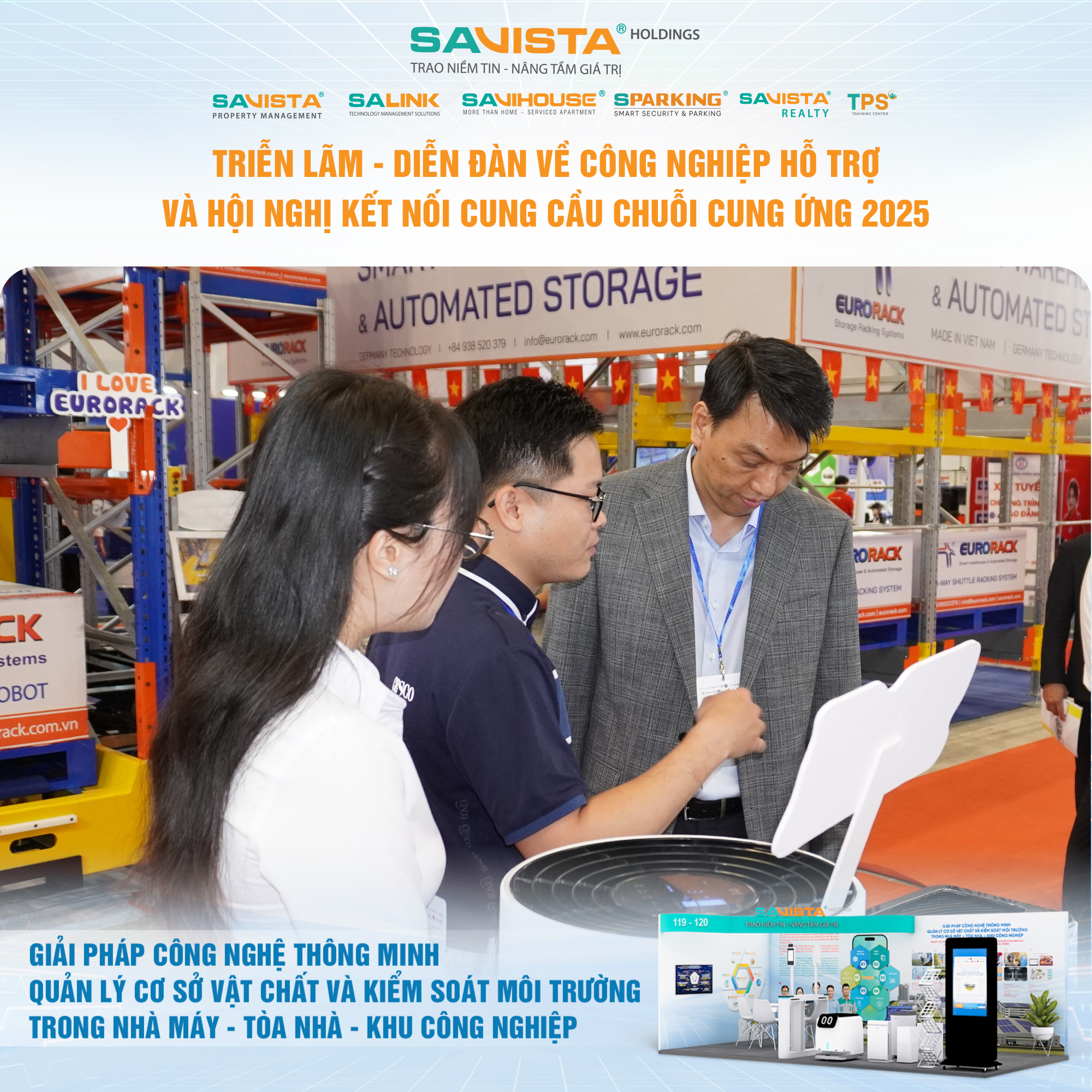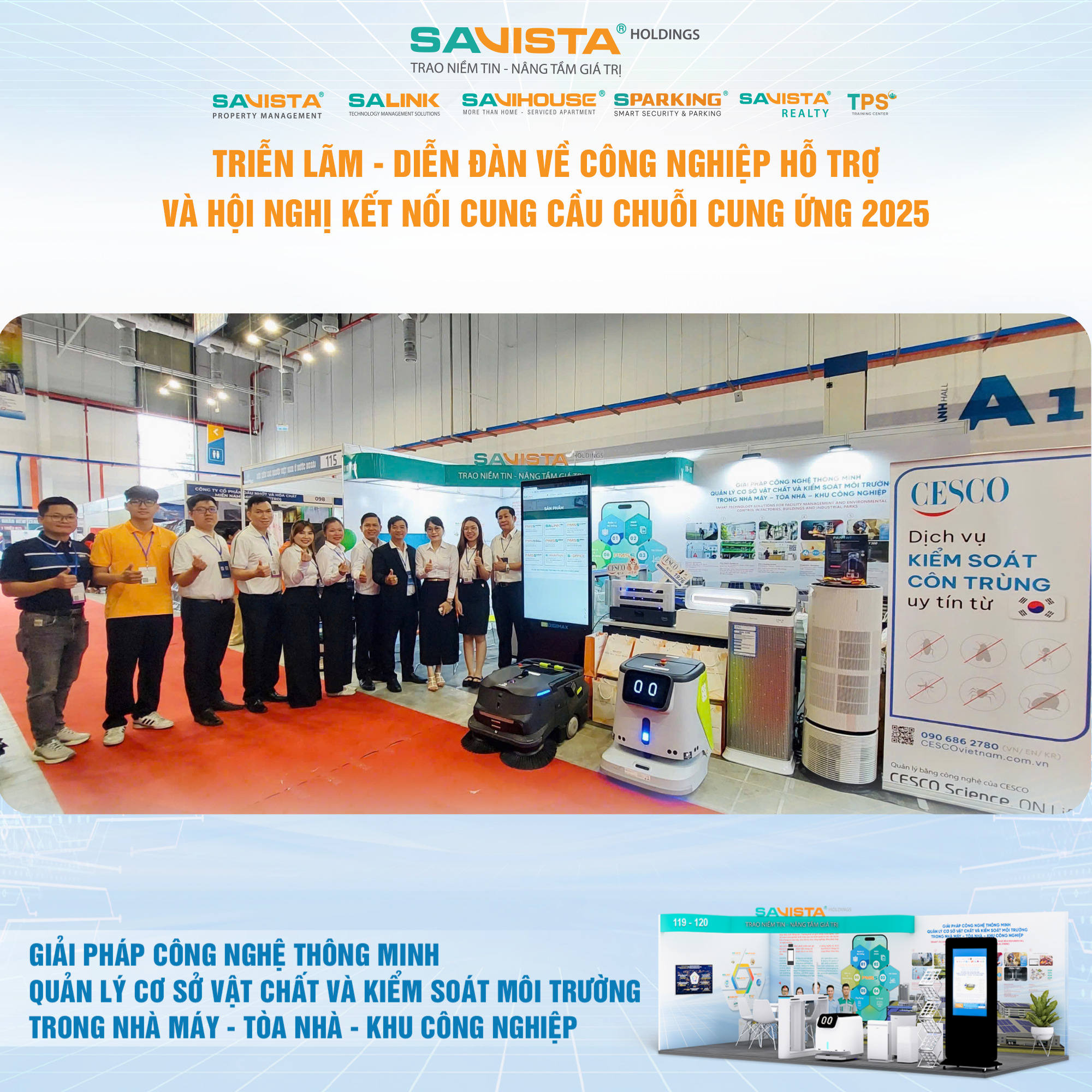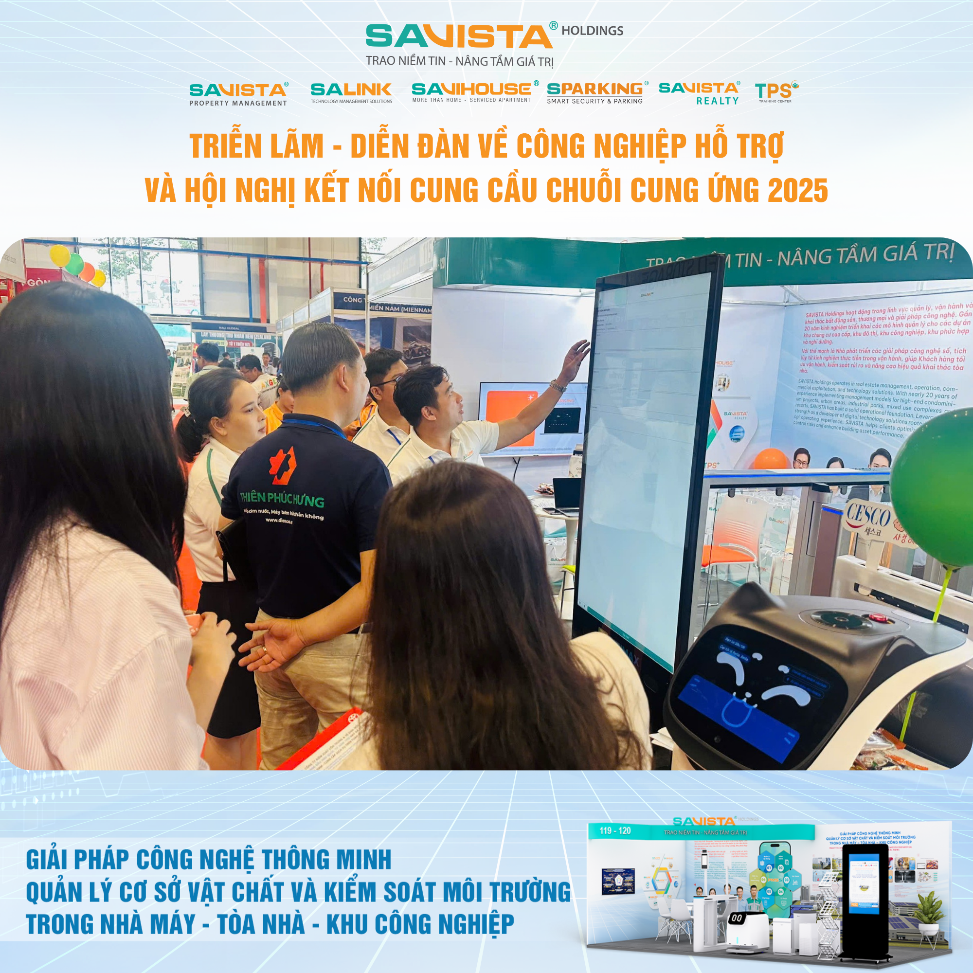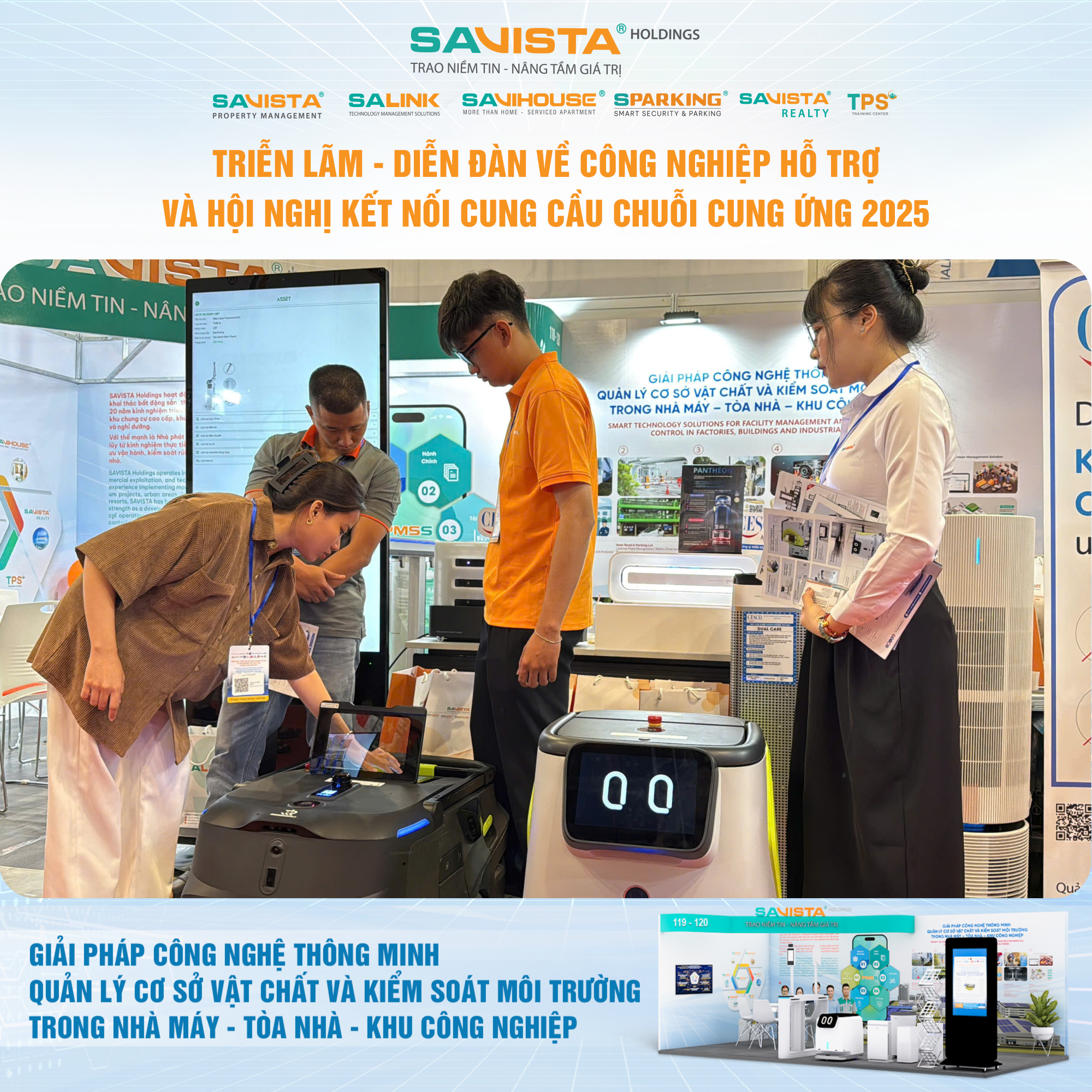 Hiện diện tại sự kiện, SAVISTA thể hiện sự đồng hành cùng cộng đồng doanh nghiệp trong lĩnh vực công nghiệp hỗ trợ, thông qua việc cung cấp các giải pháp công nghệ phù hợp với điều kiện vận hành tại Việt Nam, góp phần nâng cao năng lực tự chủ, chuẩn hóa quản lý và tăng cường tính bền vững cho nhà máy, tòa nhà, khu công nghiệp. Đây cũng là dịp để SAVISTA mở rộng kết nối đối tác, lắng nghe nhu cầu thị trường và tiếp tục hoàn thiện hệ sinh thái giải pháp phục vụ khách hàng trong giai đoạn tiếp theo.