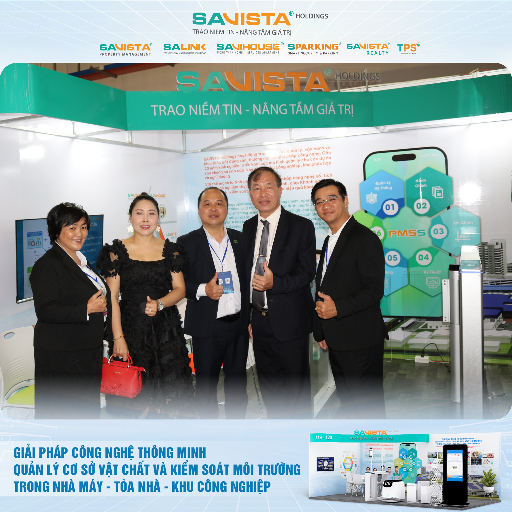 Trong khuôn khổ sự kiện, SAVISTA Holdings tham gia với vai trò Đơn vị Tài trợ Bạc, giới thiệu hệ sinh thái giải pháp công nghệ thông minh trong quản lý cơ sở vật chất và kiểm soát môi trường trong nhà máy, tòa nhà, khu công nghiệp. Với gần 20 năm kinh nghiệm trong lĩnh vực quản lý vận hành và khai thác bất động sản, đồng thời là nhà phát triển các giải pháp công nghệ số, SAVISTA hướng tới mục tiêu hỗ trợ chủ đầu tư và đơn vị vận hành tối ưu vận hành, kiểm soát rủi ro và nâng cao hiệu quả khai thác tòa nhà.