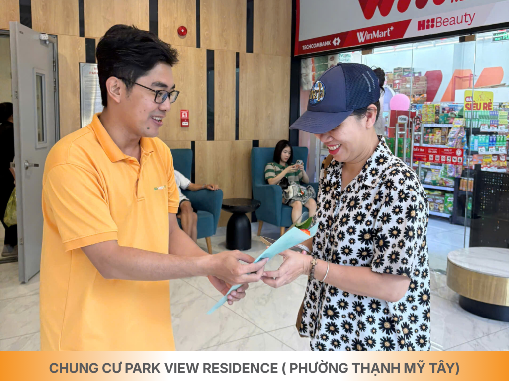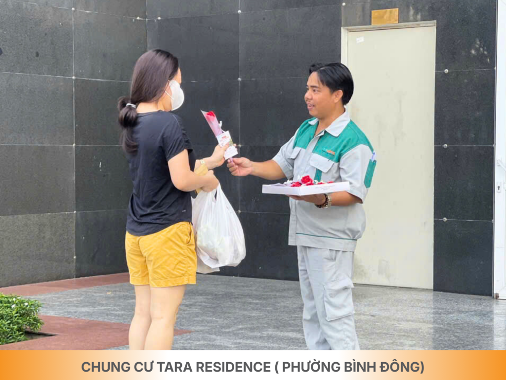 Mỗi bông hoa không chỉ là món quà nhỏ trong ngày đặc biệt, mà còn là lời tri ân gửi đến “một nửa thế giới”, những người luôn mang đến sự dịu dàng, ấm áp và nguồn năng lượng tích cực cho gia đình cũng như cộng đồng cư dân.