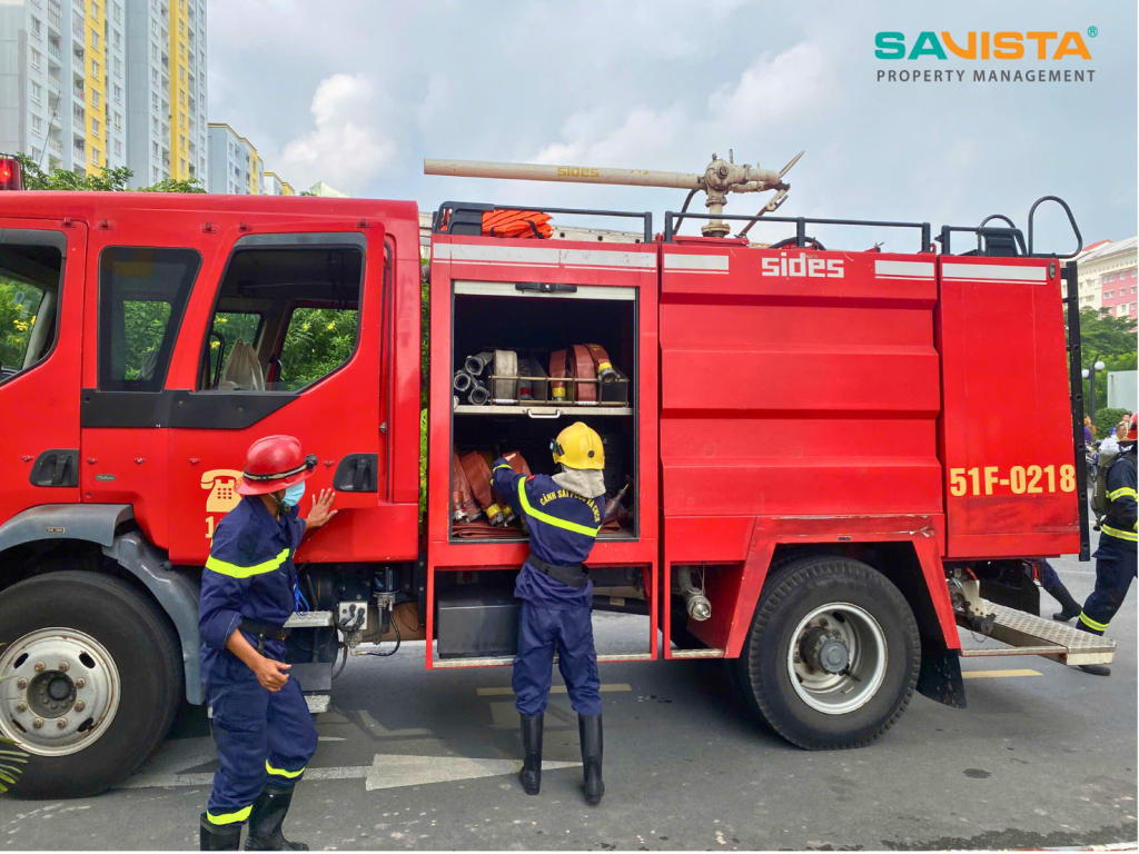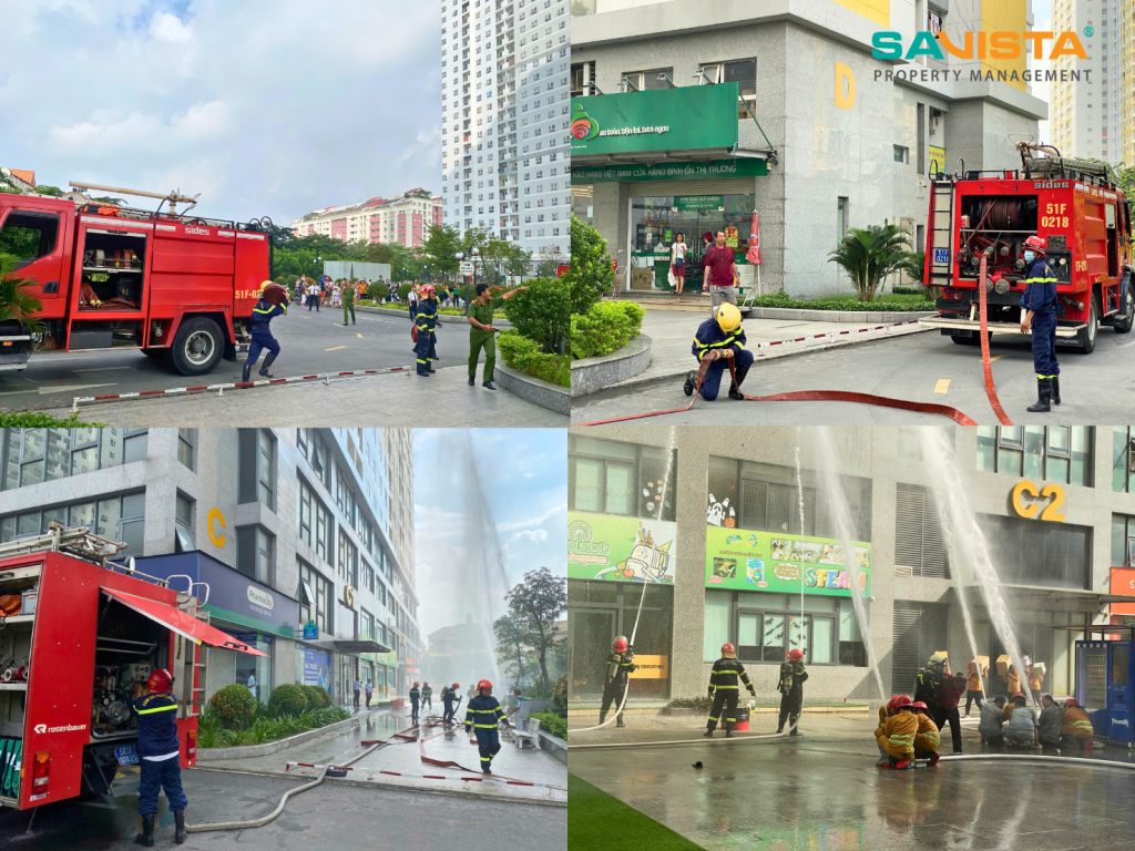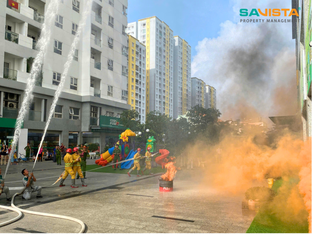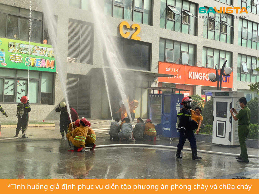 Buổi diễn tập được tiến hành nghiêm túc, có sự tham gia của đội kỹ thuật SAVISTA, nhân viên an ninh, bộ phận vệ sinh và lực lượng PCCC cơ sở. Các đội ngũ nhân sự được hướng dẫn quy trình thao tác sử dụng bình chữa cháy, sơ tán cư dân theo lộ trình an toàn, kiểm soát khu vực nguy hiểm và phối hợp xử lý tình huống giả định dưới sự hướng dẫn trực tiếp của Cảnh sát PCCC.